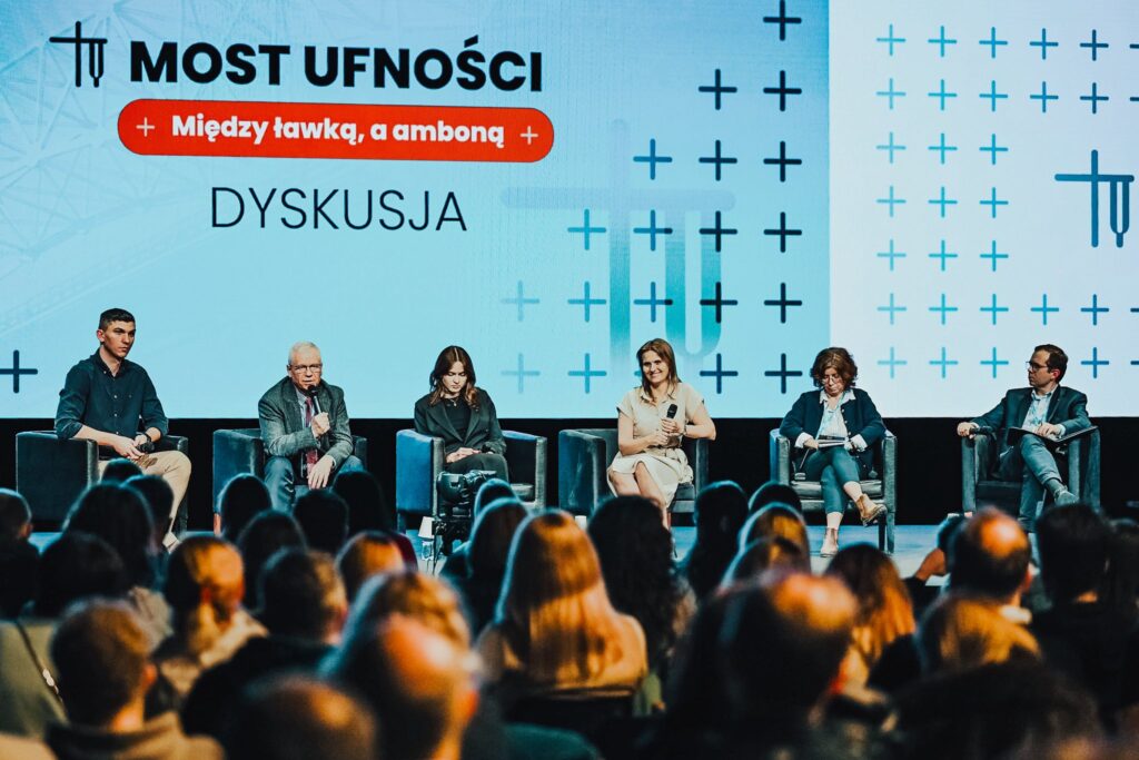 Panel zamykający konferencję: „MOST UFNOŚCI – Między ławką, a amboną” skupiał się na kwestiach odpowiedzialności świeckich i duchownych oraz realiach współpracy pomiędzy tymi środowiskami. W gronie panelistów znalazł się Marcin Zieliński, Magda Korzekwa-Kaliszuk, Marta Titaniec, AnMari, Marek Jurek. Rozmowa, moderowana przez Szymona Czyszka, stała się okazją do wymiany doświadczeń – dobrych i złych – w budowaniu relacji i partnerskiej współpracy między kapłanami i aktywnymi w ich parafiach osobami świeckimi. Ponownie podkreślono wagę wzajemnego słuchania oraz empatii i prób zrozumienia drugiej strony – jej motywacji, sposobu myślenia, obaw i ich przyczyn.
