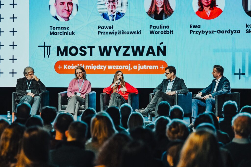 Z kolei panel pt. „MOST WYZWAŃ – Kościół między wczoraj, a jutrem”, odnosił się do tematów czytania współczesnych megatrendów, zmieniających świat i człowieka. Moderator – Tomasz Marciniuk, wspólnie z panelistami: ks. Robertem Skrzypczakiem, Michałem Łuczewskim, Pawłem Powiężlikowskim, Pauliną Worożbit, Ewą Przybysz-Gardyzą, przeprowadzili słuchaczy przez skomplikowany i ciekawy świat cyfryzacyjnych zawiłości, technologicznych nowinek, czy złej sławy mediów społecznościowych.